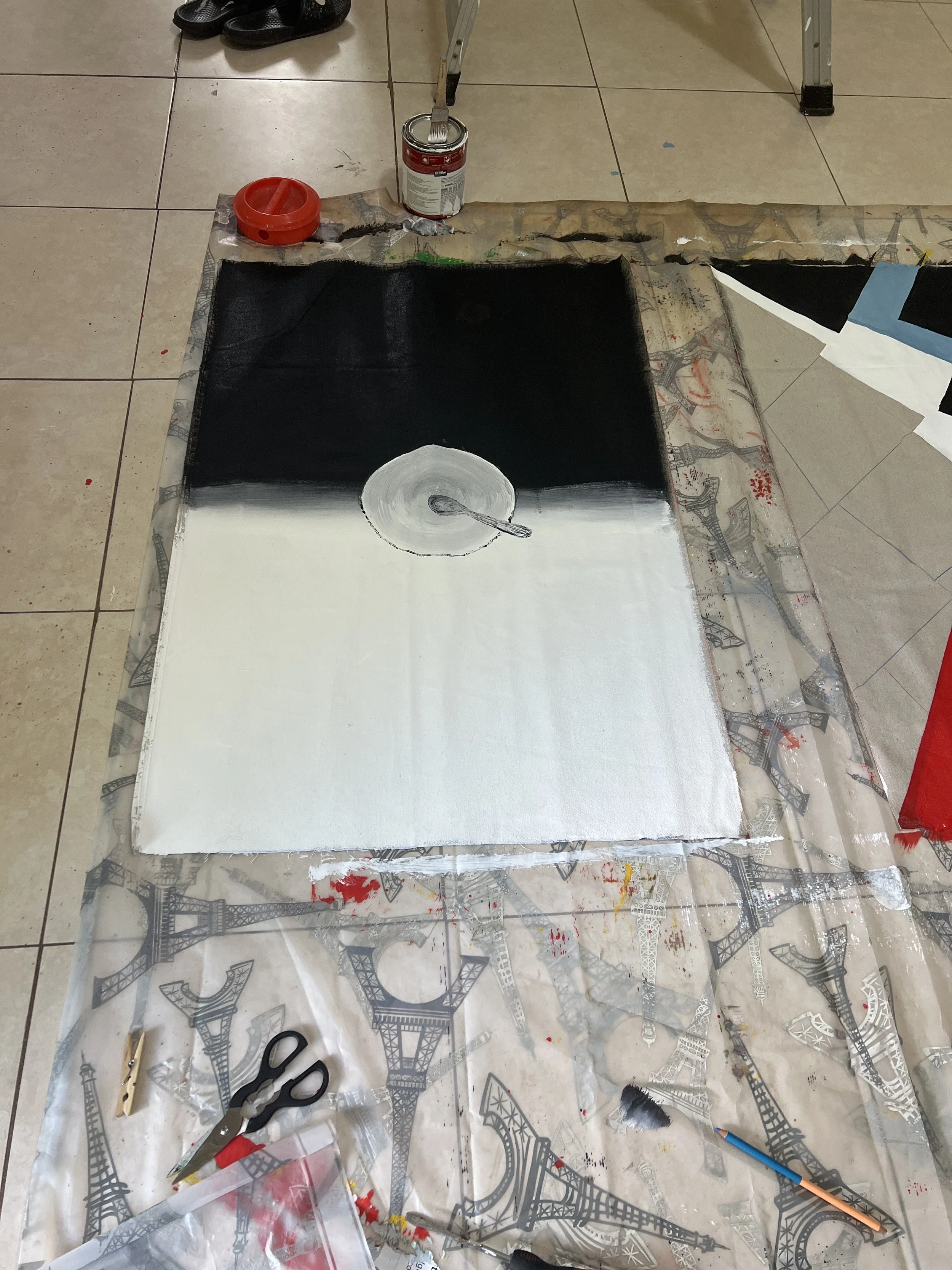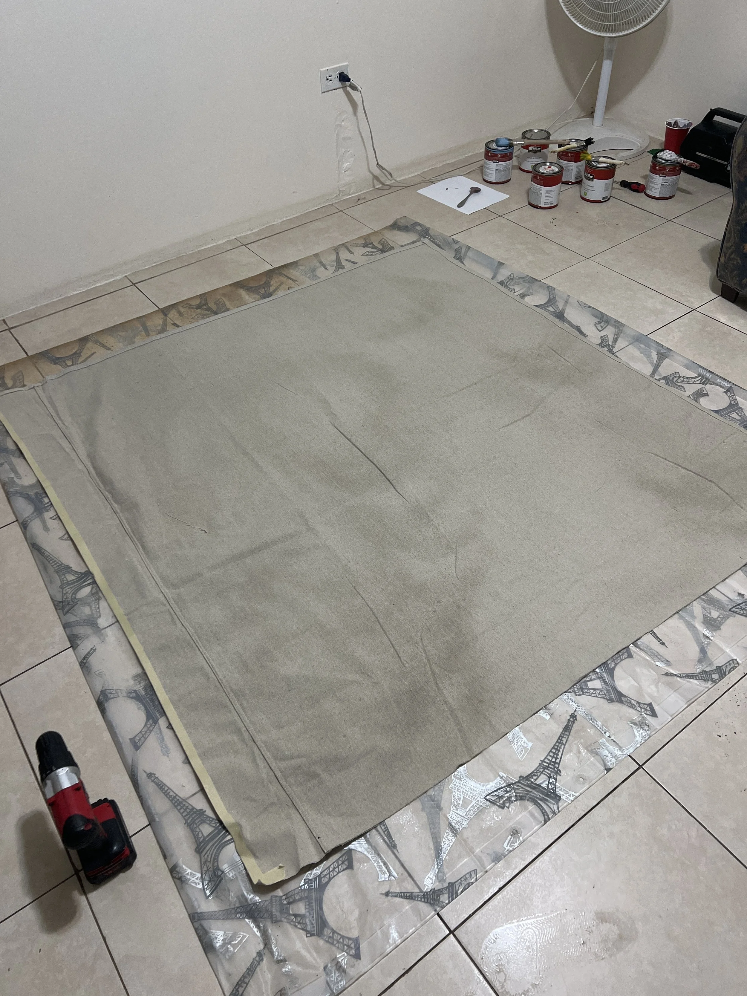 I drove to Home Depot and grabbed a drop cloth, some paint, and a few brushes.